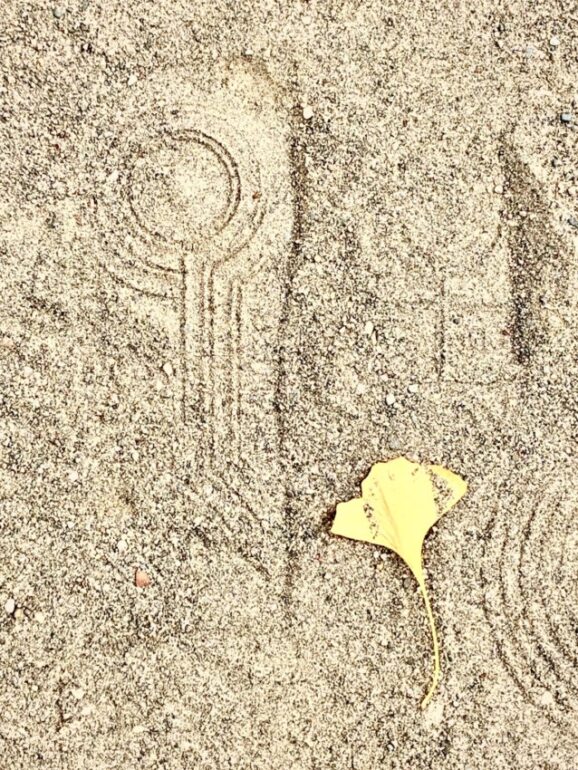 痕跡とは、少しオーバーで、靴の跡だと思いますが、どこかの地上絵のようにも見えて…