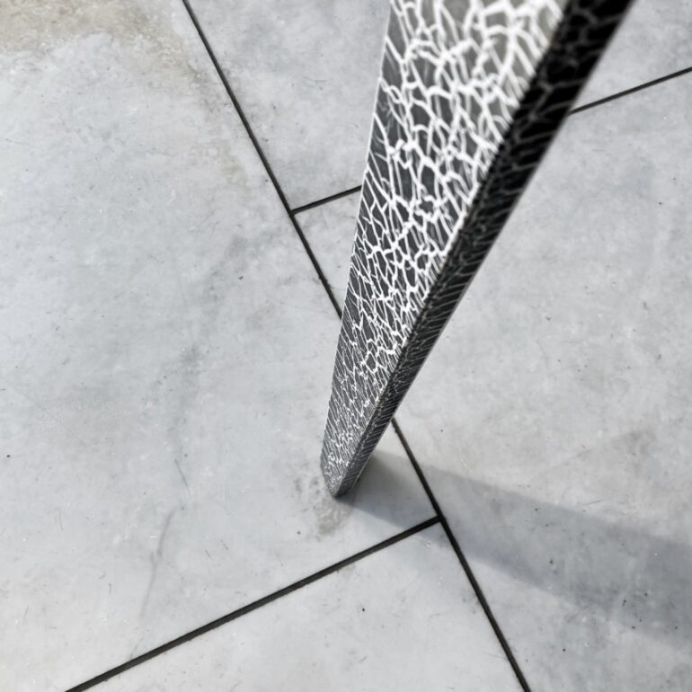 食事中に、ふと足もとをみると、なかなかオシャレなテーブルの脚なのでした。