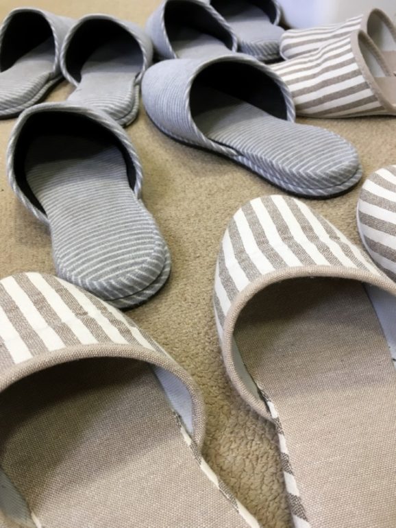 このあと、しっかり消毒をして綺麗にスリッパ立てに並べられました。
