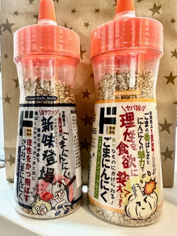 ごはんにラーメンにスープなど いろいろなものにかけられる ヤバ旨 ドン・キホーテの「ごまにんにく」と「かつおごまにんにく」
